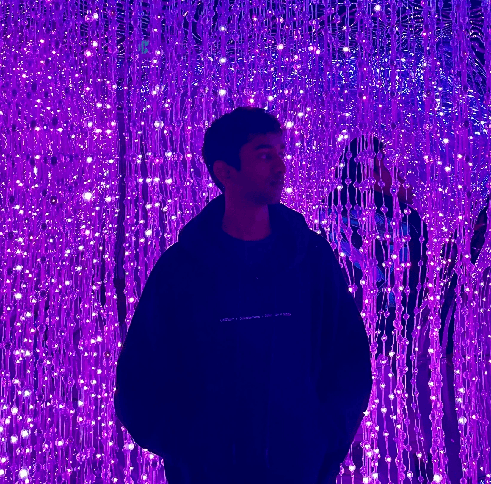 Portrait of a person in dark clothing speaking on a phone